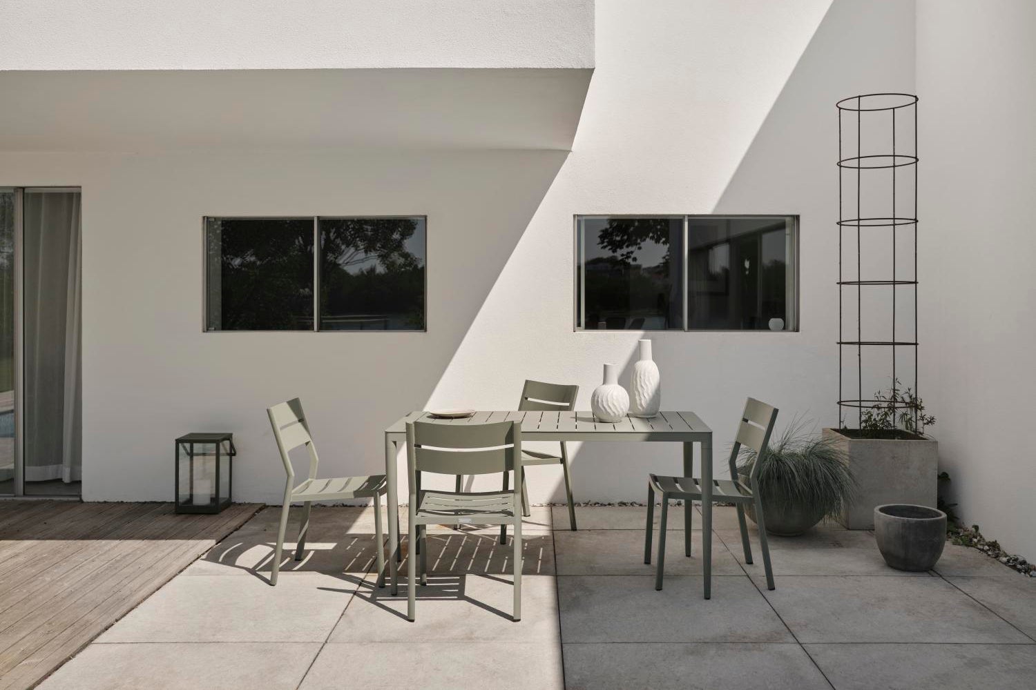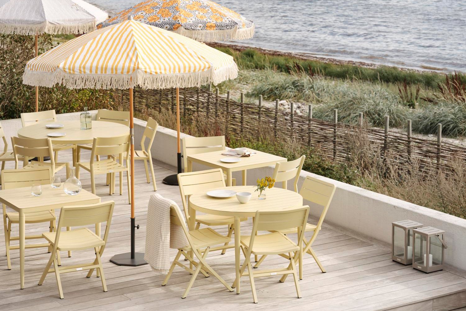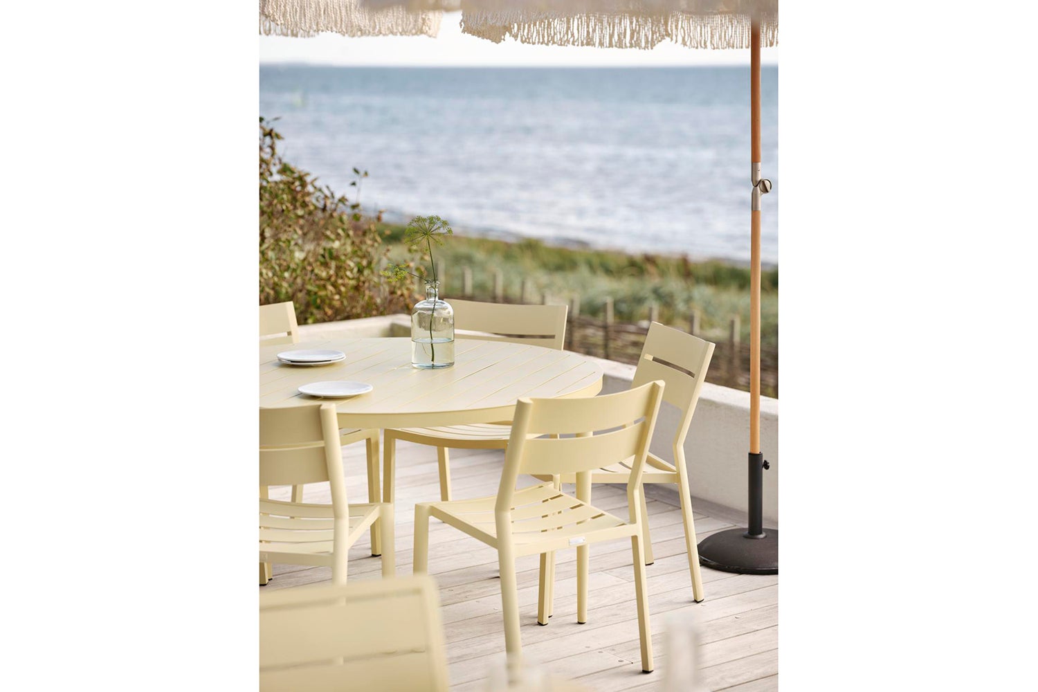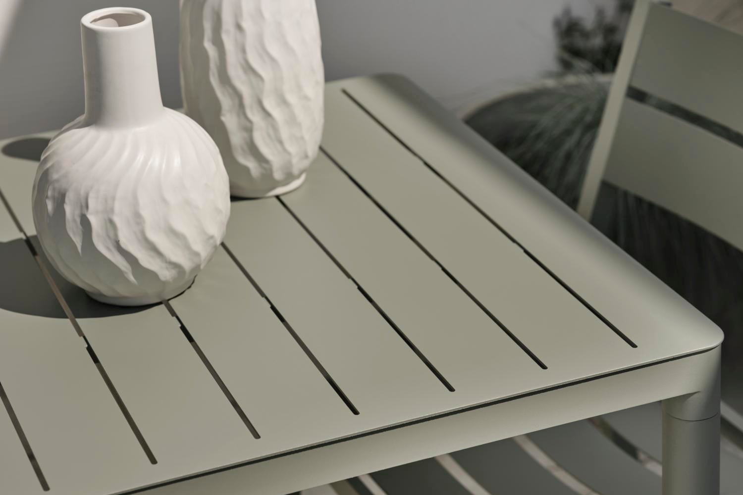 Med Bigby kombineres det bedste af skandinavisk design med storbystemning og sommer. Lavet i aluminium med elegante linjer og gennemtænkte detaljer – blandt andet i de tilspidsede ben og stilrene bordplader med lameller. De sommerlige farver løfter looket yderligere.