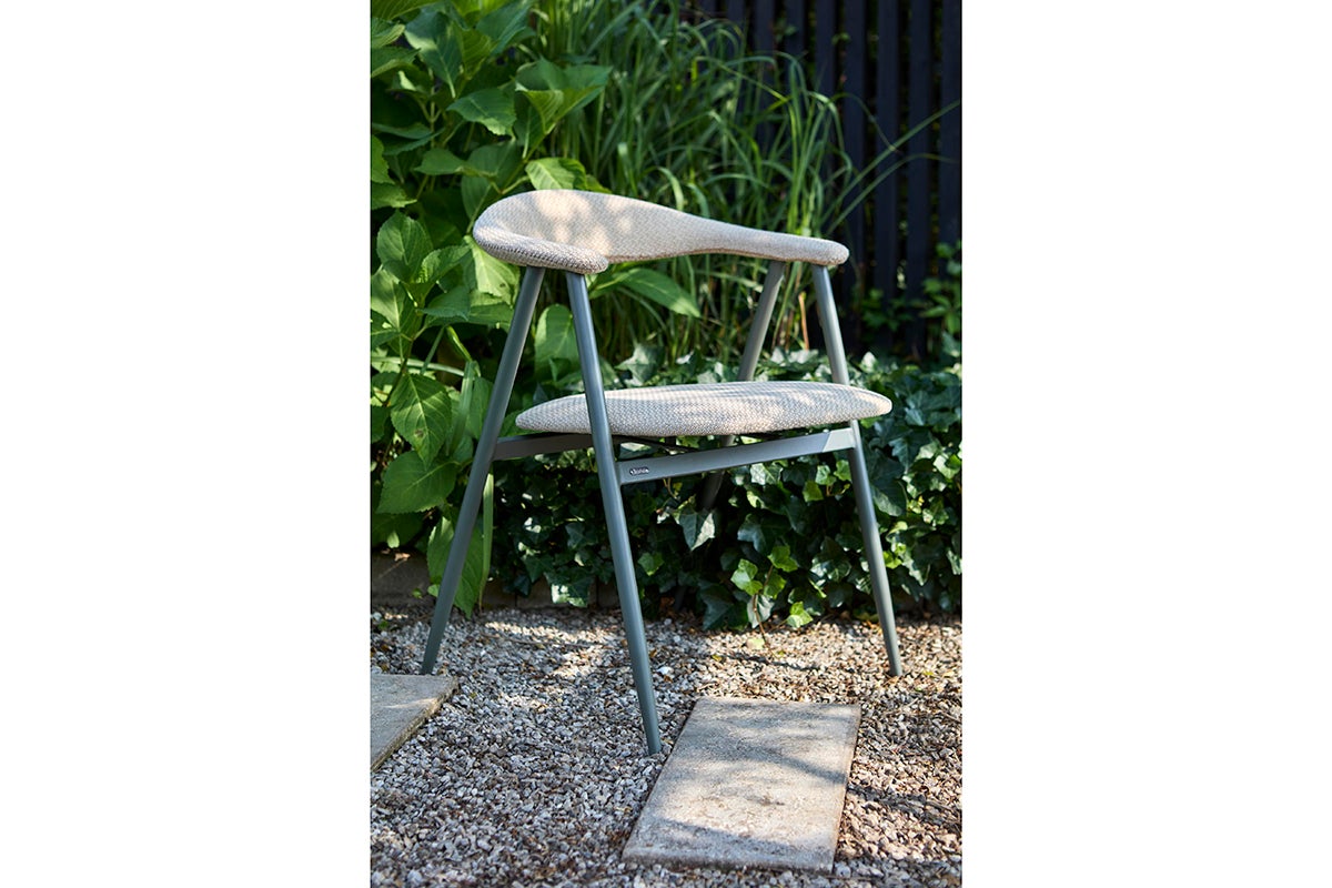 Boi, stolen som kombinerer komfort og holdbarhed med en robust stålramme og afsmalnede ben, der giver både stabilitet og et moderne, sofistikeret udseende. Stolen er lavet til udendørs brug og står stabilt, samtidig med at den tilbyder et slankt, nutidigt design. Det smukt buede ryglæn giver ikke kun ekstra støtte, men tilføjer også til designet. Håndsyede sømme.
