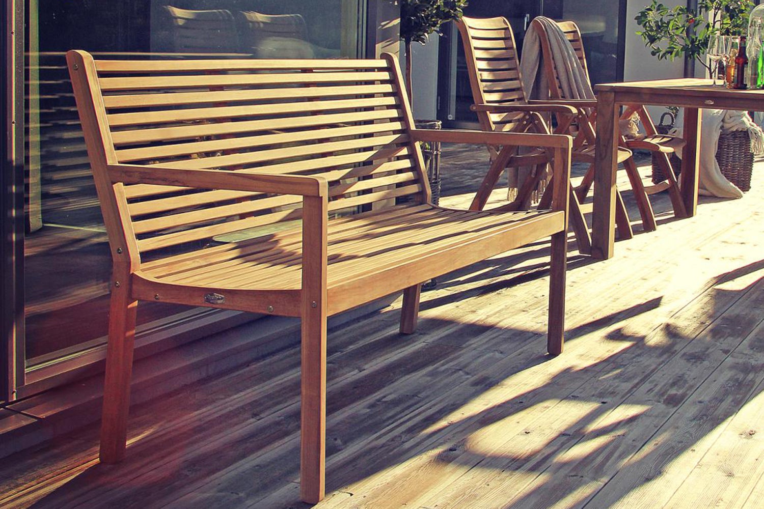 3-sits soffa i teak med fina linjer. Passar utmärkt som solitär i trädgården.