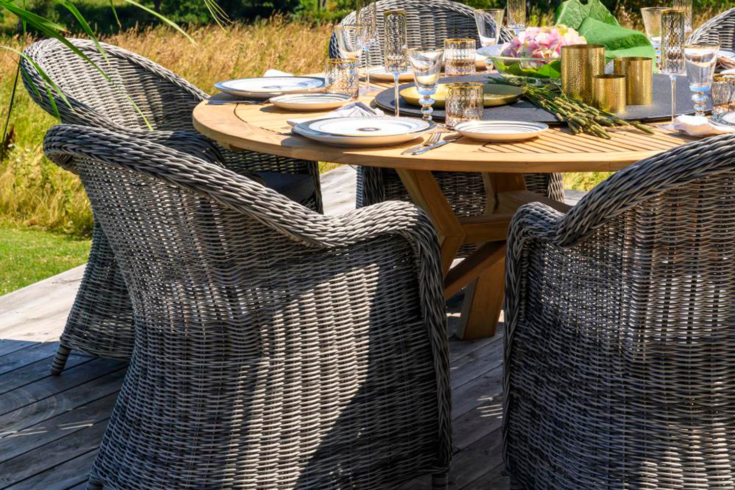 En matstol som passar utmärkt till våra matbord i teak. Eads görs i samma naturfärgade och grå konstrotting som serien Rosita och har även samma färgsättning på dynorna. Perfekta att matcha med varandra! Ryggdynan säljs separat.