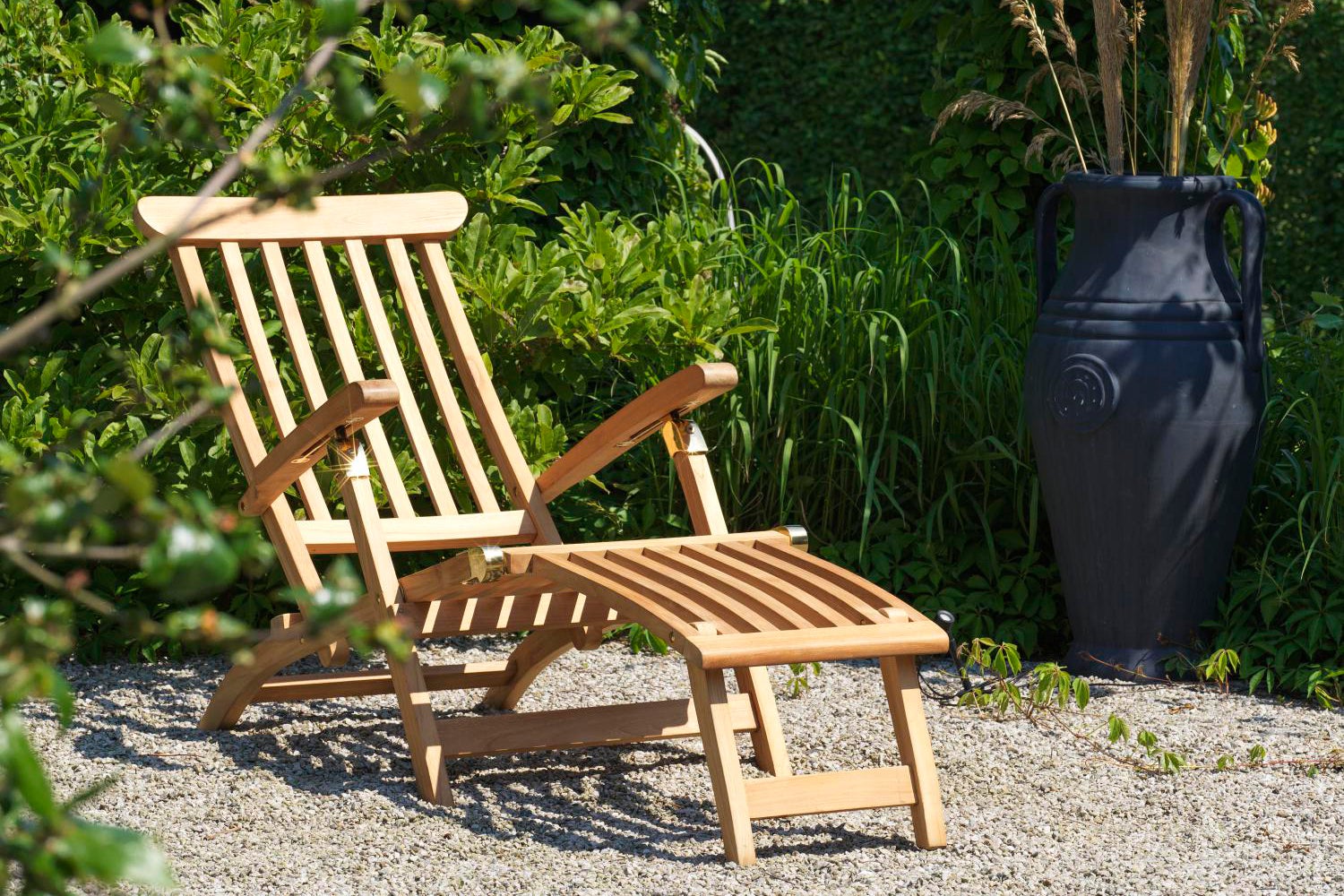 En klassisk däckstol i standardteak som blir till perfektion när du matchar den med någon av våra däckstolsdynor.