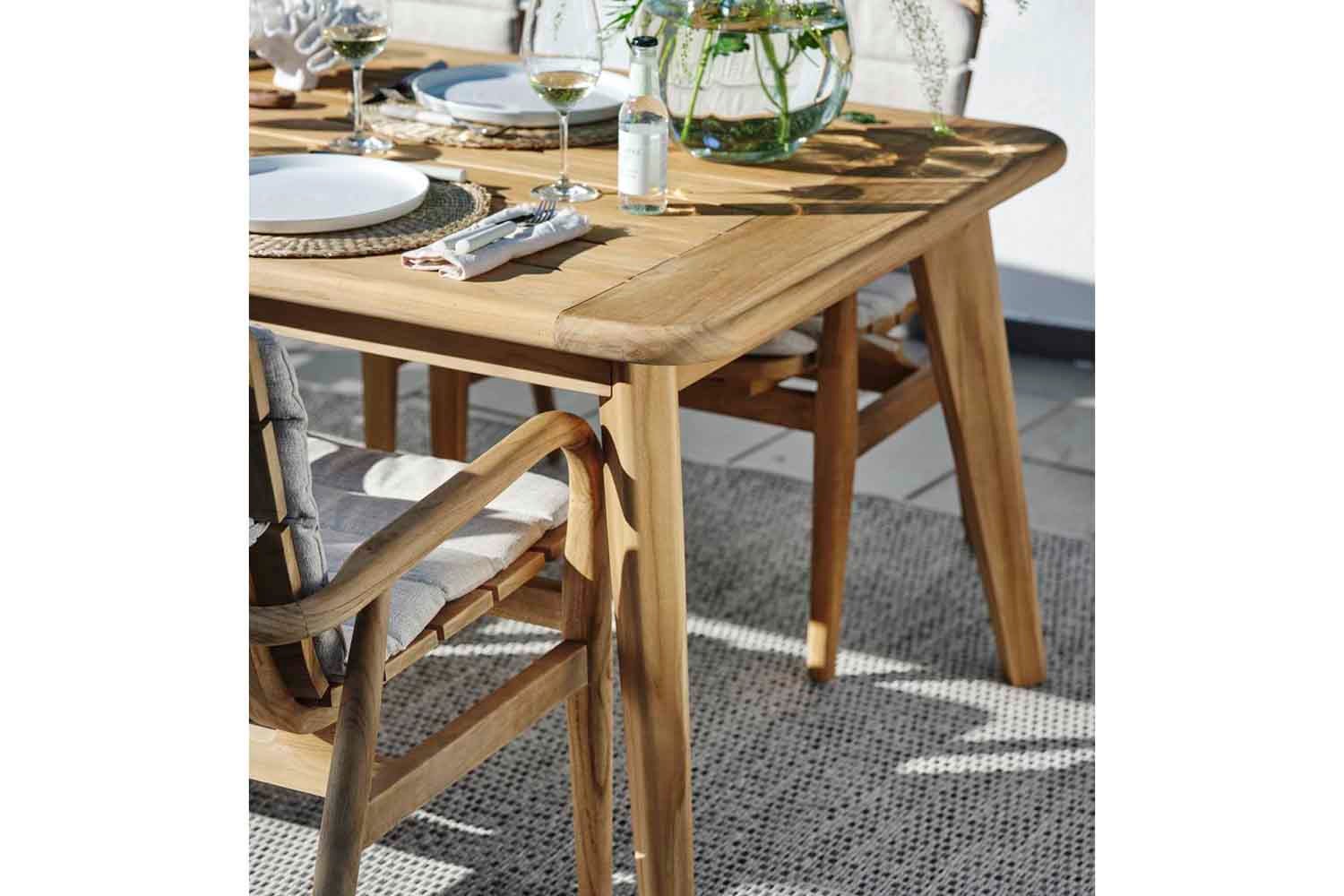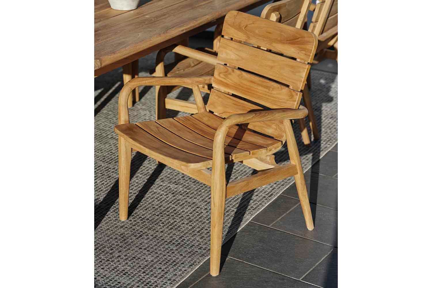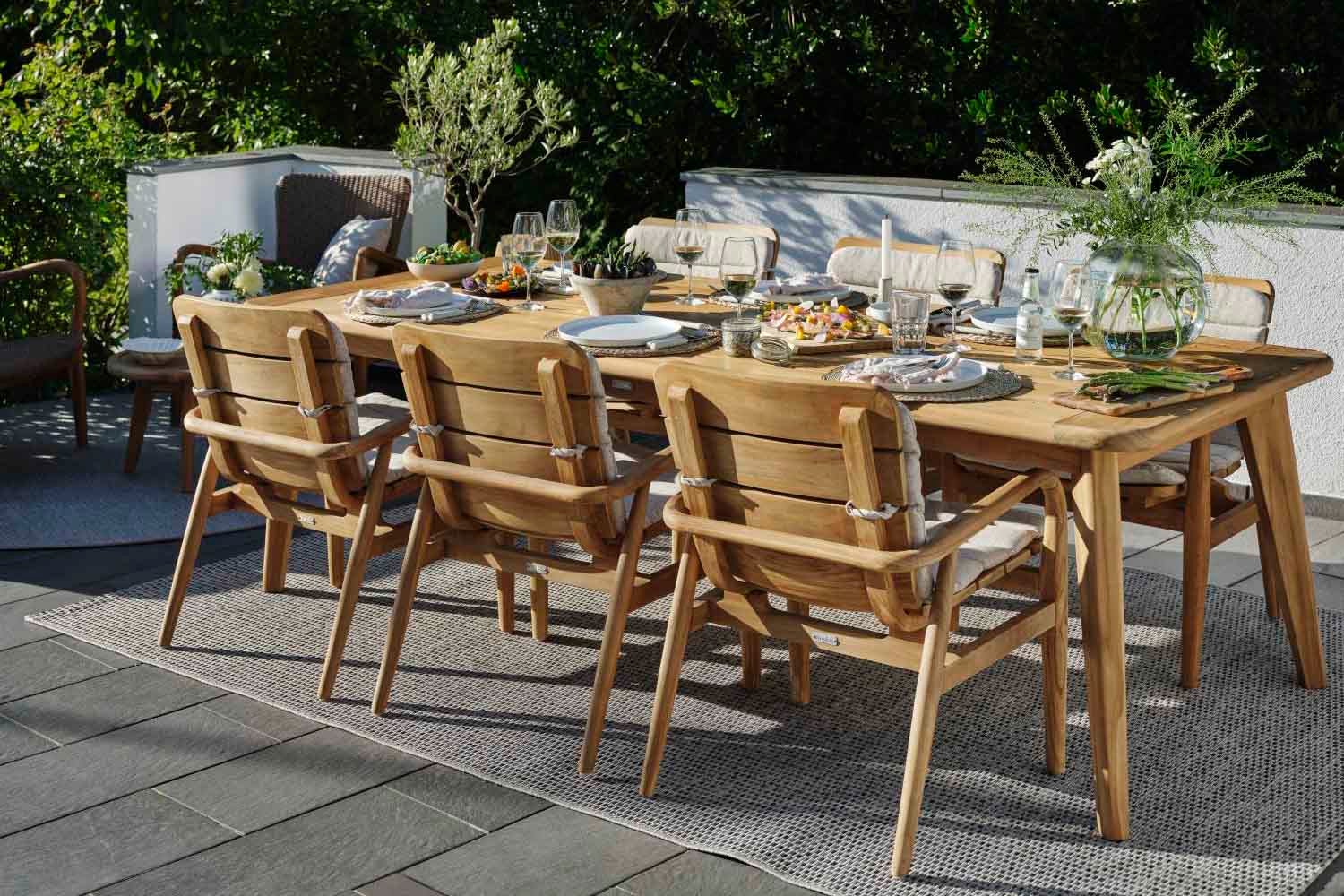 Lilja er et sæt, der passer til både afslapning og måltider. Runde organiske former i teak. Solide møbler, som samtidig er elegante på grund af de afrundede detaljer.