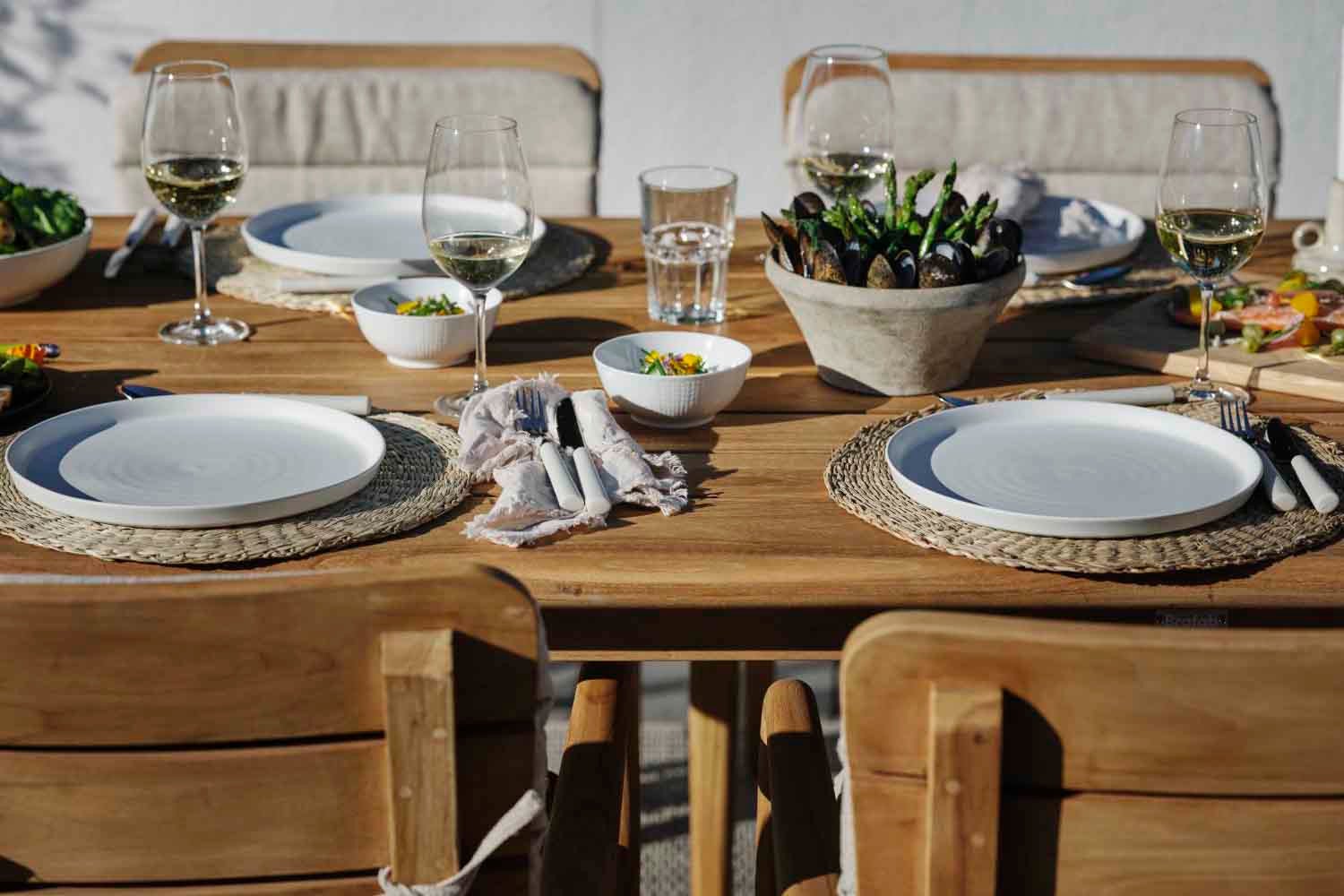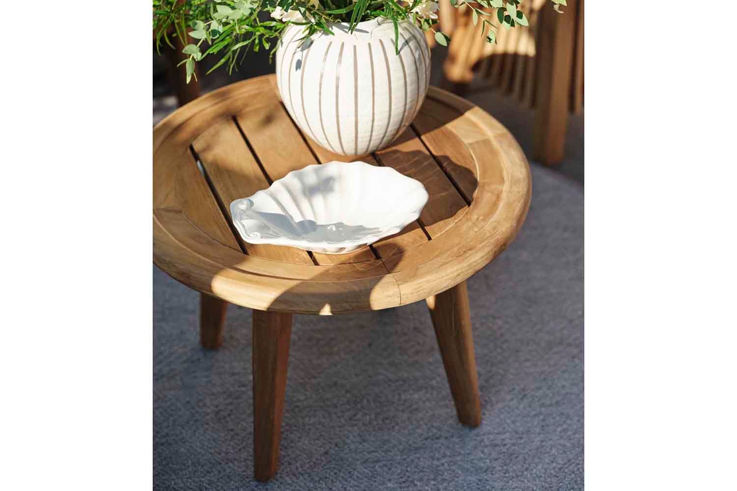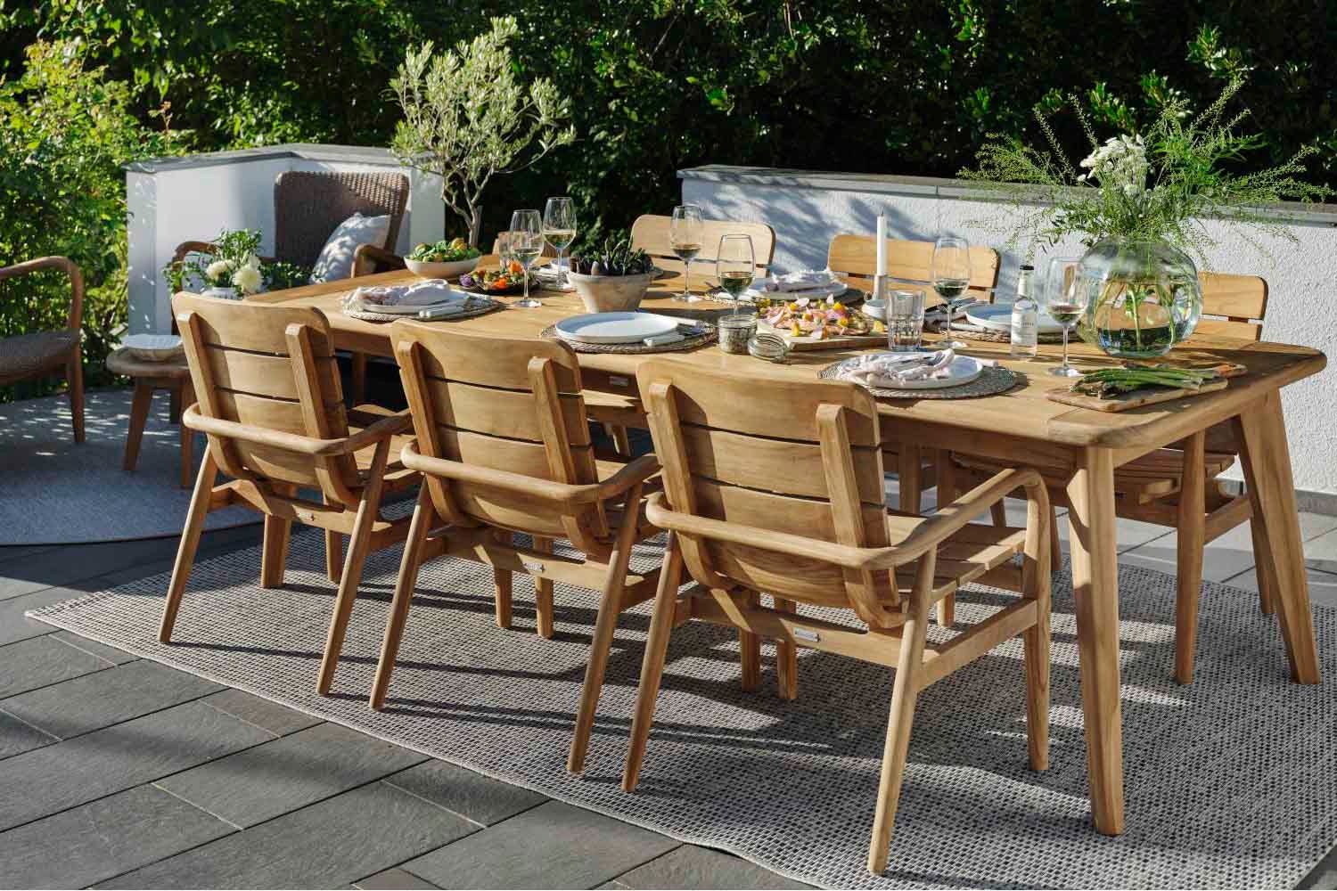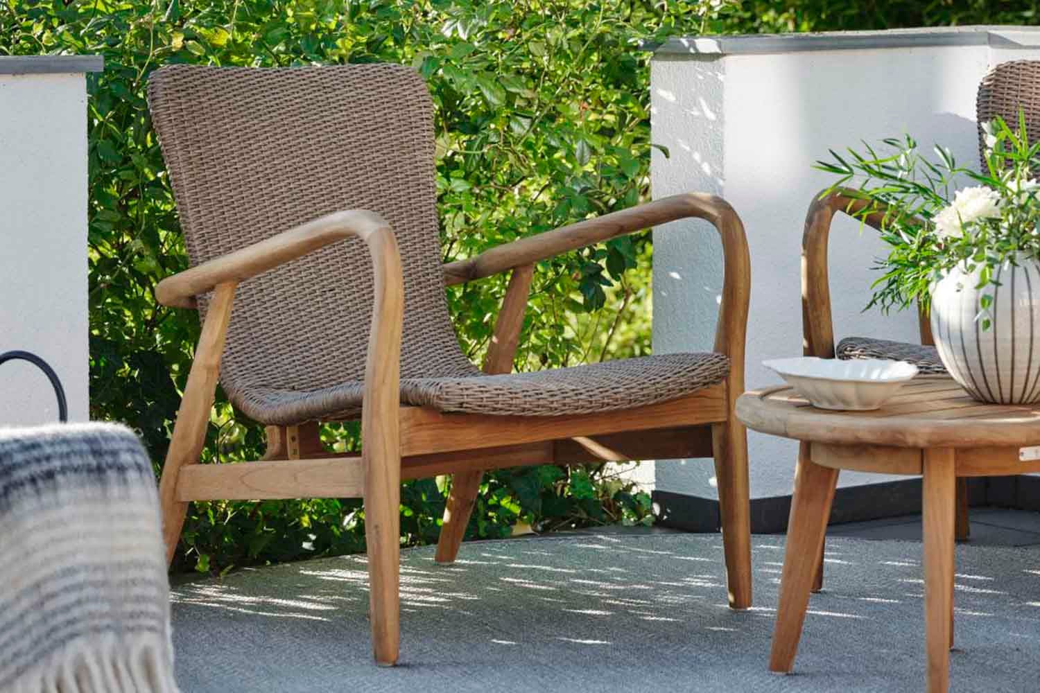 Lilja er et sæt, der passer til både afslapning og måltider. Runde organiske former i teak. Solide møbler, som samtidig er elegante på grund af de afrundede detaljer.
