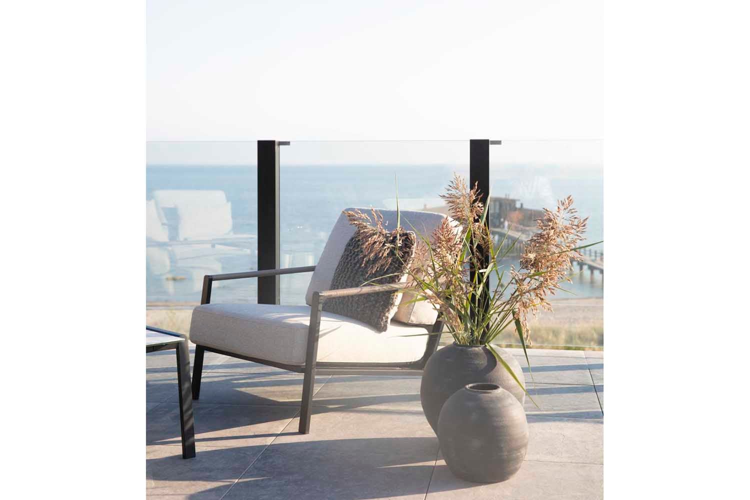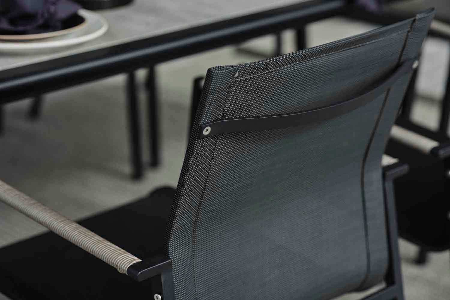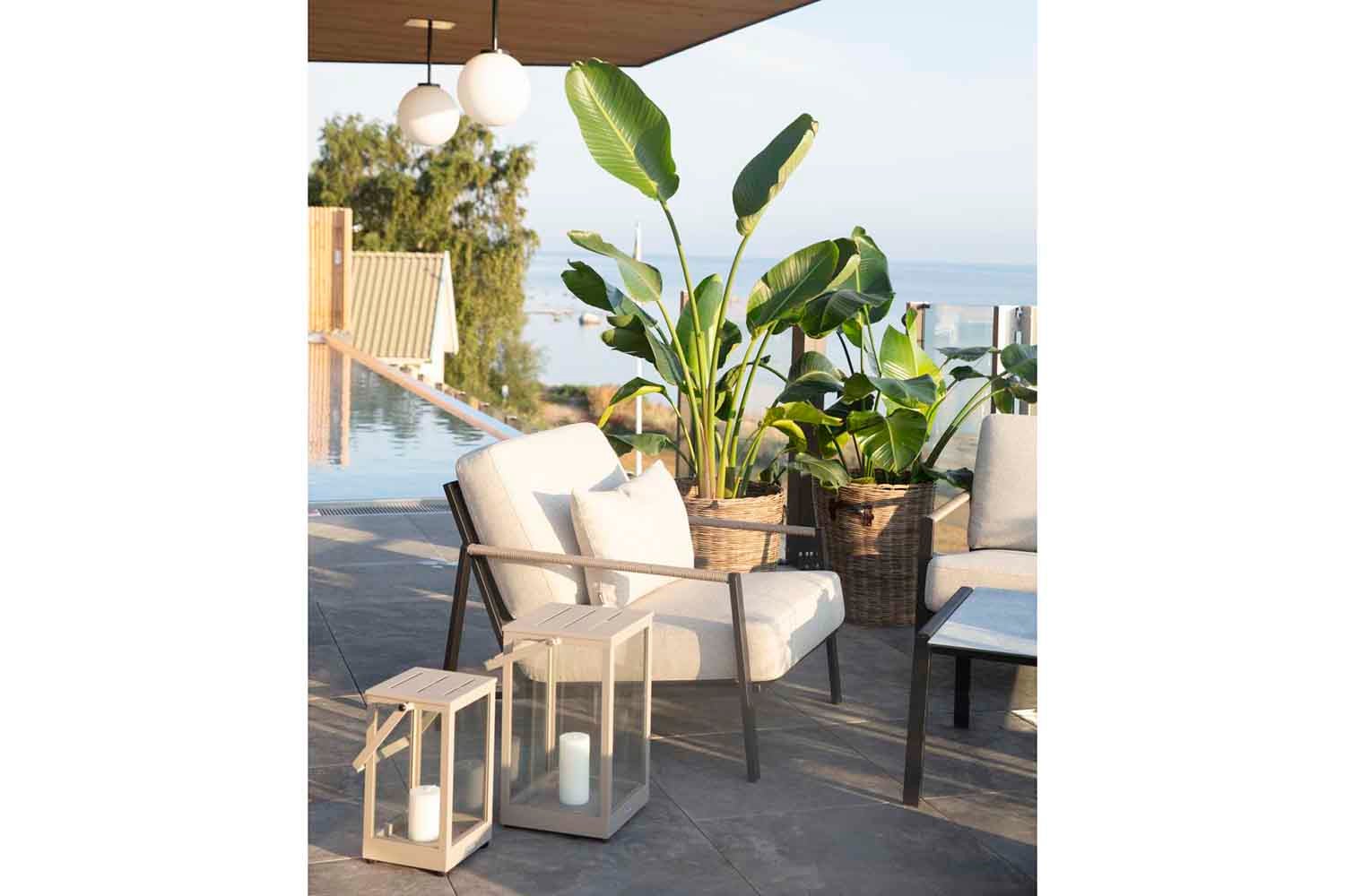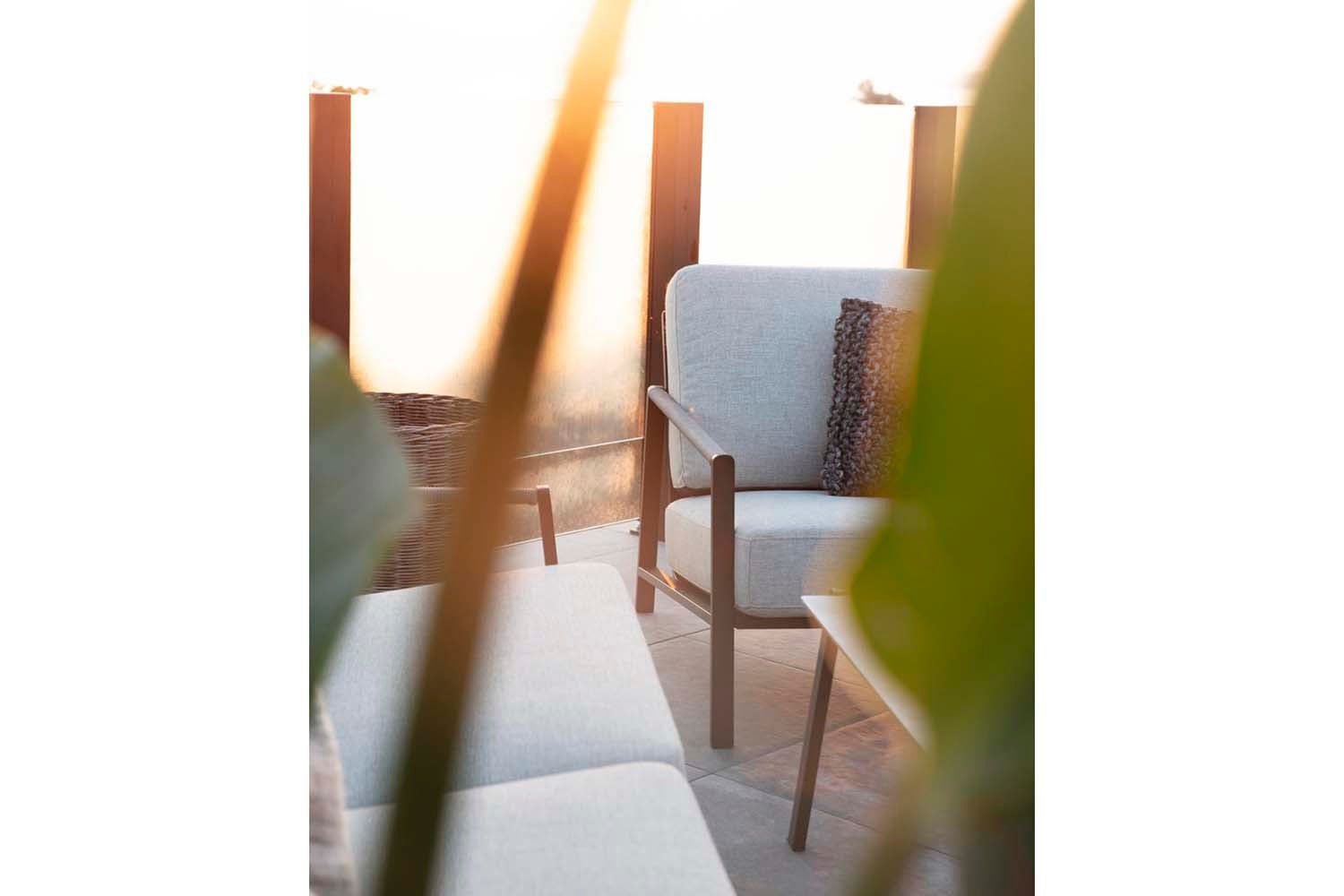Lyra er en moderne og meget elegant serie i en dejlig blanding af materialer. Rammen er lavet af sort pulverlakeret rustfrit stål (304), perfekt til at modstå forskellige vejrforhold. Smukke detaljer af kunstig rattan på armlænene.