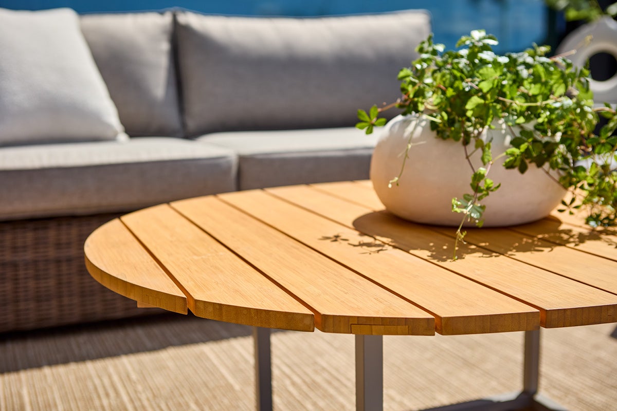 Naturlig form. Stabil tilstedeværelse. Olive er et legende og elegant bord, opkaldt efter de oliven, der inspirerede dets form. Aluminiumsstel og bambus- eller aluminiumstop forener funktion og design. Justerbare fødder giver stabilitet på alle overflader. Olive passer til de fleste sofagrupper og er også stilfuld at kombinere med sofaborde som Mill eller Peace Lounge.