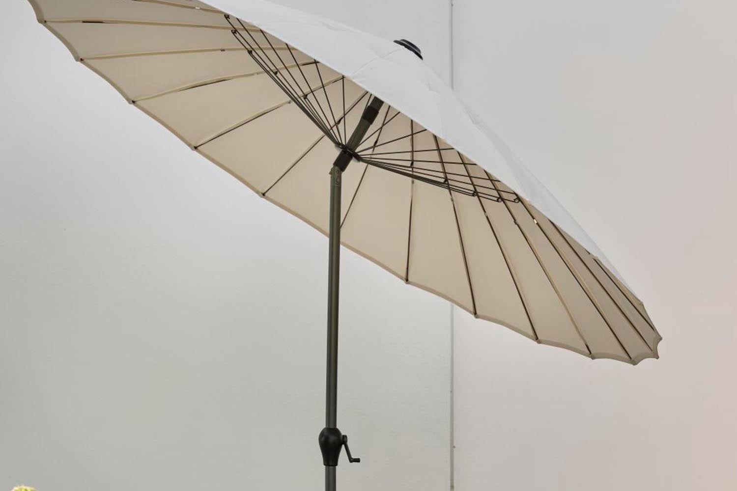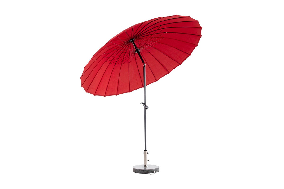 Shanghai er en moderne parasol med en generøs størrelse og 50+ UPF-beskyttelse mod solens ultraviolette stråler. De 2,7 meter i diameter skaber god beskyttelse mod solen. Parasollen har et robust håndsving og en stang, der kan vippes, hvilket gør det nemt at opnå svalende skygge. Når den vippes, kan man se det smukke stålstel – form og funktion i harmoni. Denne parasol giver både stil og funktion til dit uderum. Samlet set alle de funktioner, der er forbundet med en klassisk Shanghai parasol.