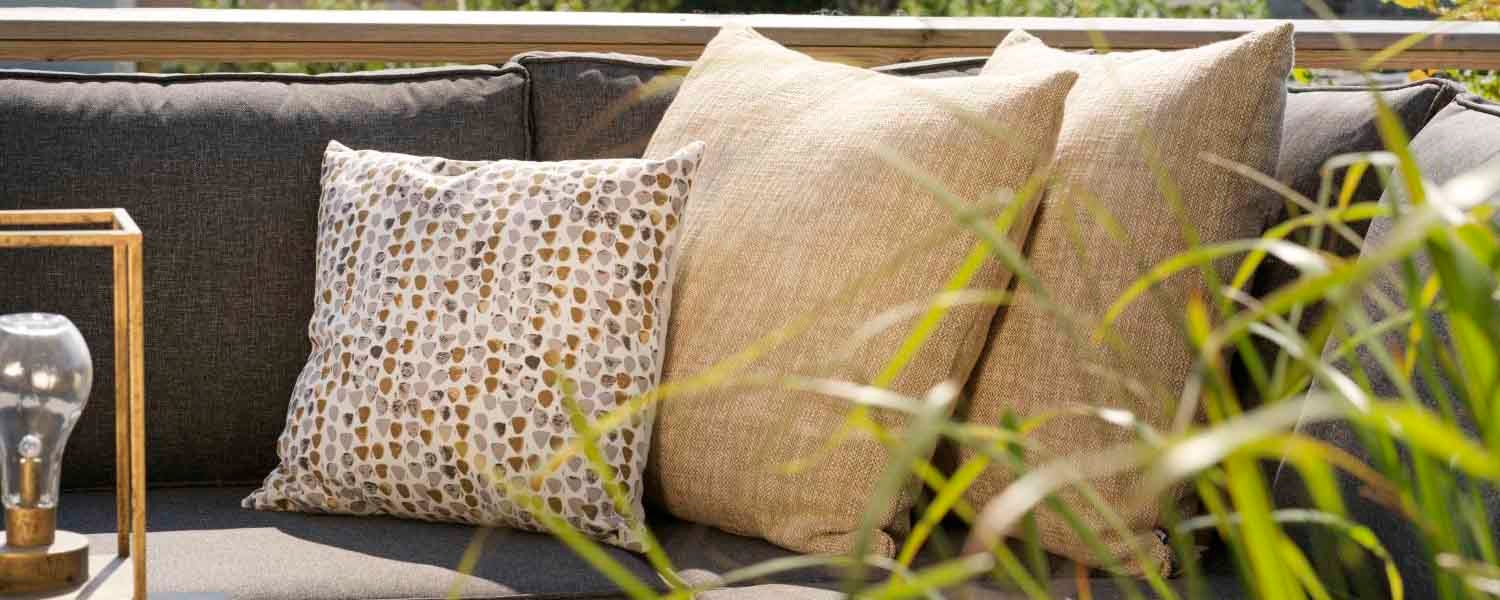 Det bedste trick til at skabe hygge i dit uderum er at indrette med tekstiler. Det er kun fantasien, der sætter grænser! Pift loungemøblerne op med vores puder, øg stolekomforten med behagelige hynder, og læg nogle tæpper ud for at forlænge sommeraftenerne. Glem heller ikke at forkæle altan- eller flisegulvet. Vores slidstærke tæpper af har en hyggelig bomuldsfølelse – behageligt for fødderne og smukt for øjnene!