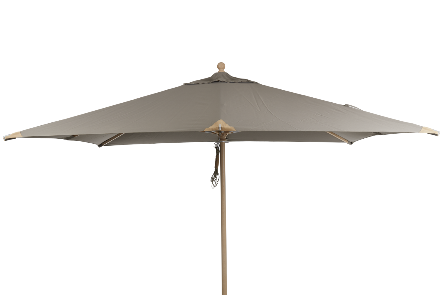 3x3 m parasoll av FSC-märkt trä (bok) med mattlackerad yta. Vackra läderskoningar och väv av 250 g polyester.
